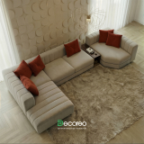 В комплекте — стильный столик из шпона, который идеально дополняет диван и создаёт единую композицию в интерьере и 4 подушки.