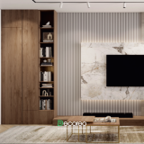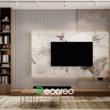 Идеальное решение для современной гостиной: шкаф и тумба из ЛДСП Egger 18 мм, Дуб Каселла — доступный и стильный заменитель шпона. Мягкие панели и гипсовые 3д панели модель 180 «Band»