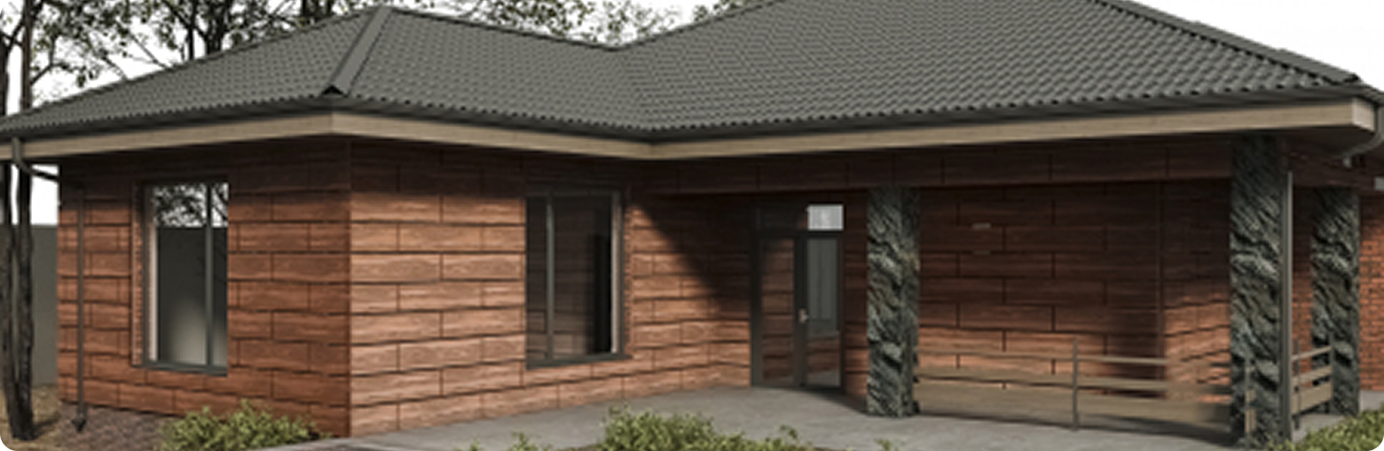 Фиброцементные панели крепятся на металлическую или деревянную подсистему с шагом 60 см по технологии вентилируемого фасада. На цоколь возможен монтаж по замкнутой системе через пеноплэкс