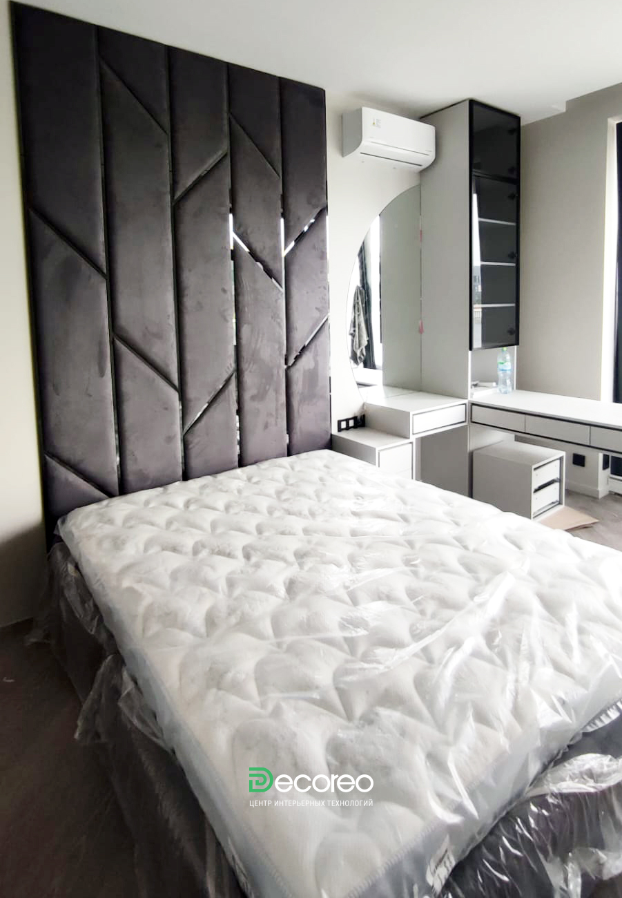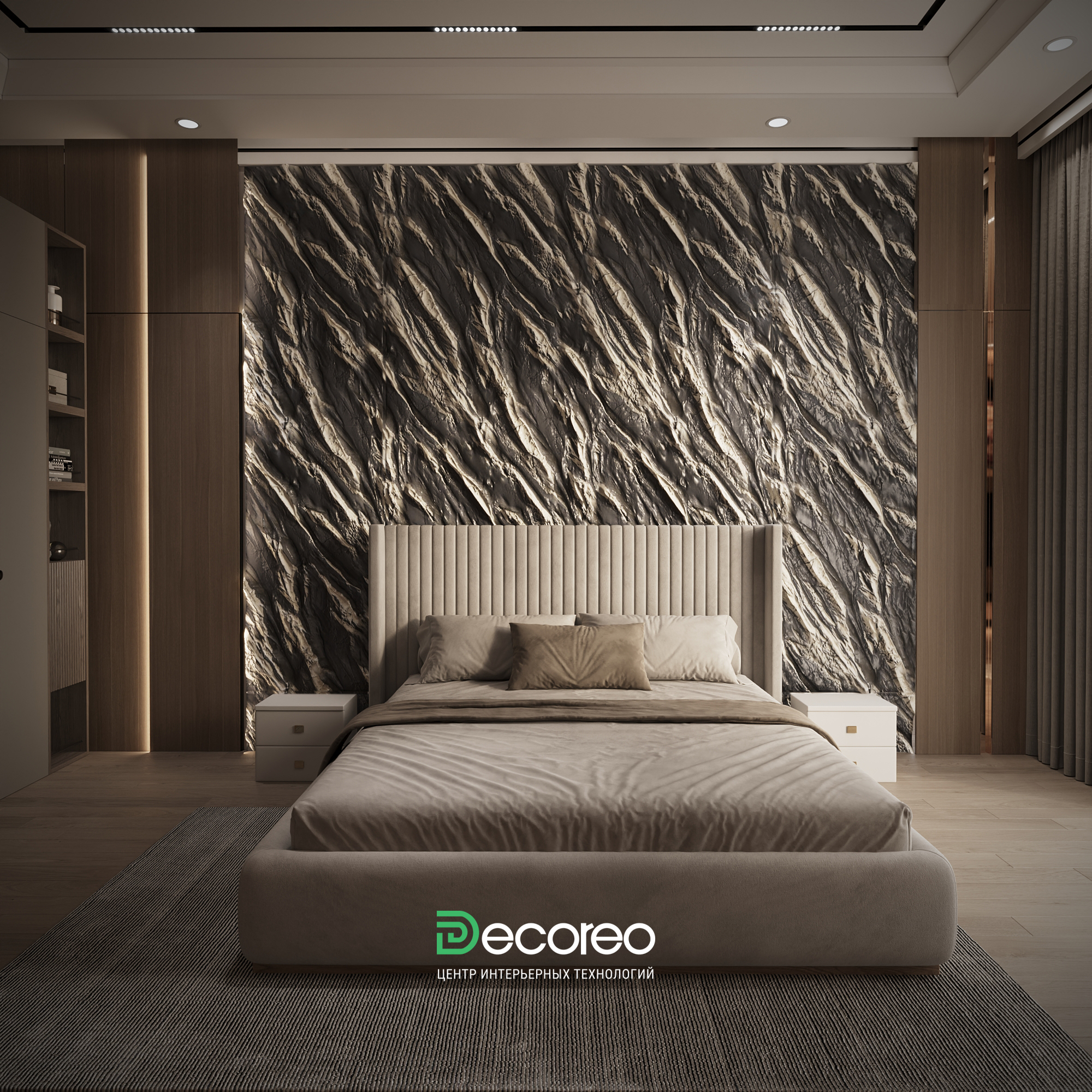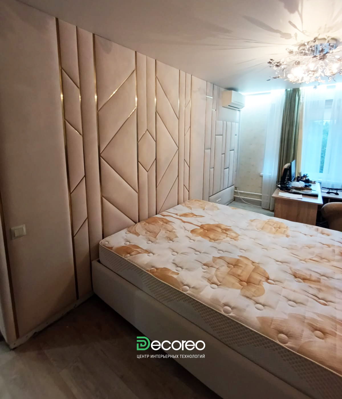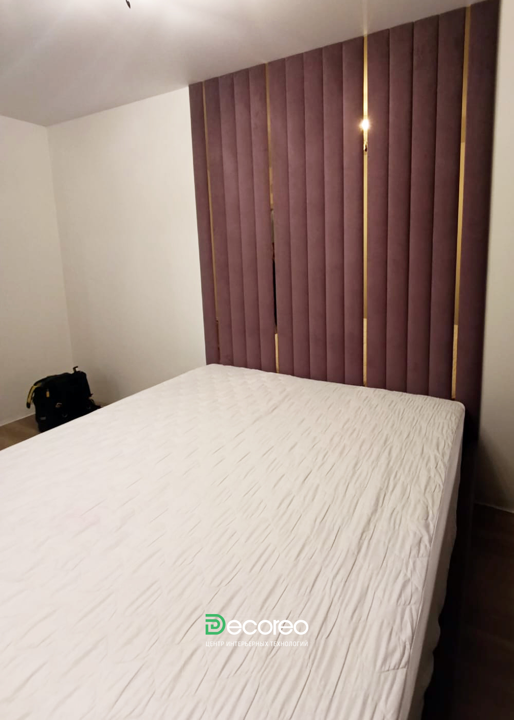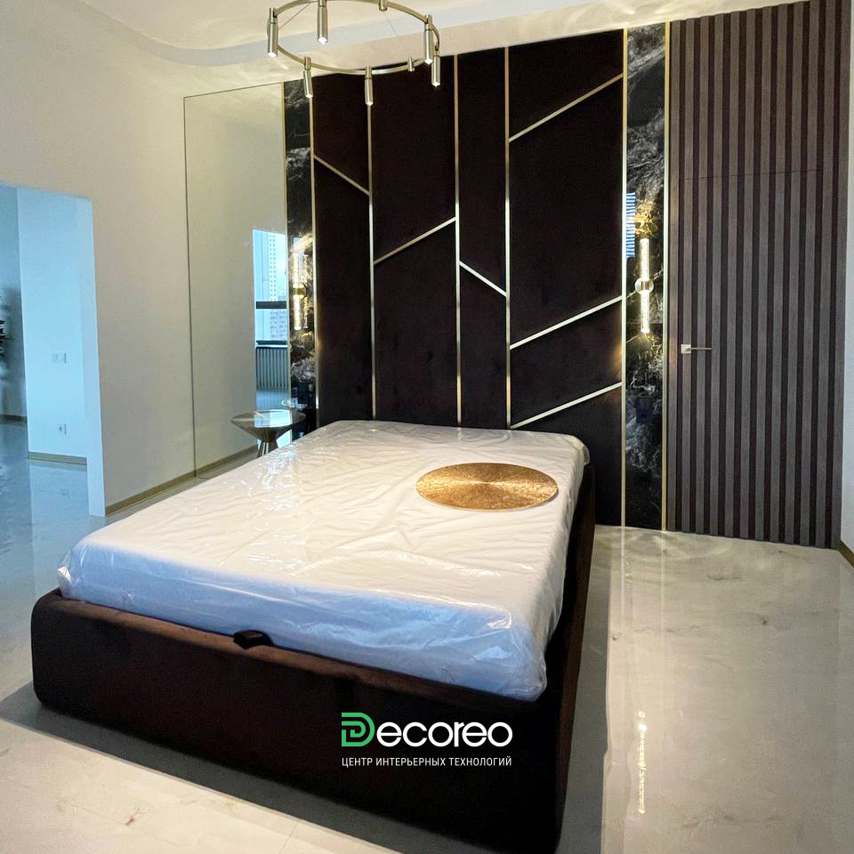 Мы создали современный интерьер, где каждая комната сочетается в одном стиле и цветовой гамме, используя ритмические элементы, такие как рейки у кроватей, в зоне телевизора, в шкафу и на тумбе. Стены декорированы различными материалами, такими как 3D-панели, мягкие панели и дерево, которые гармонично дополняют друг друга. Особый уют интерьеру придают мягкие кровати, выполненные по индивидуальному заказу.