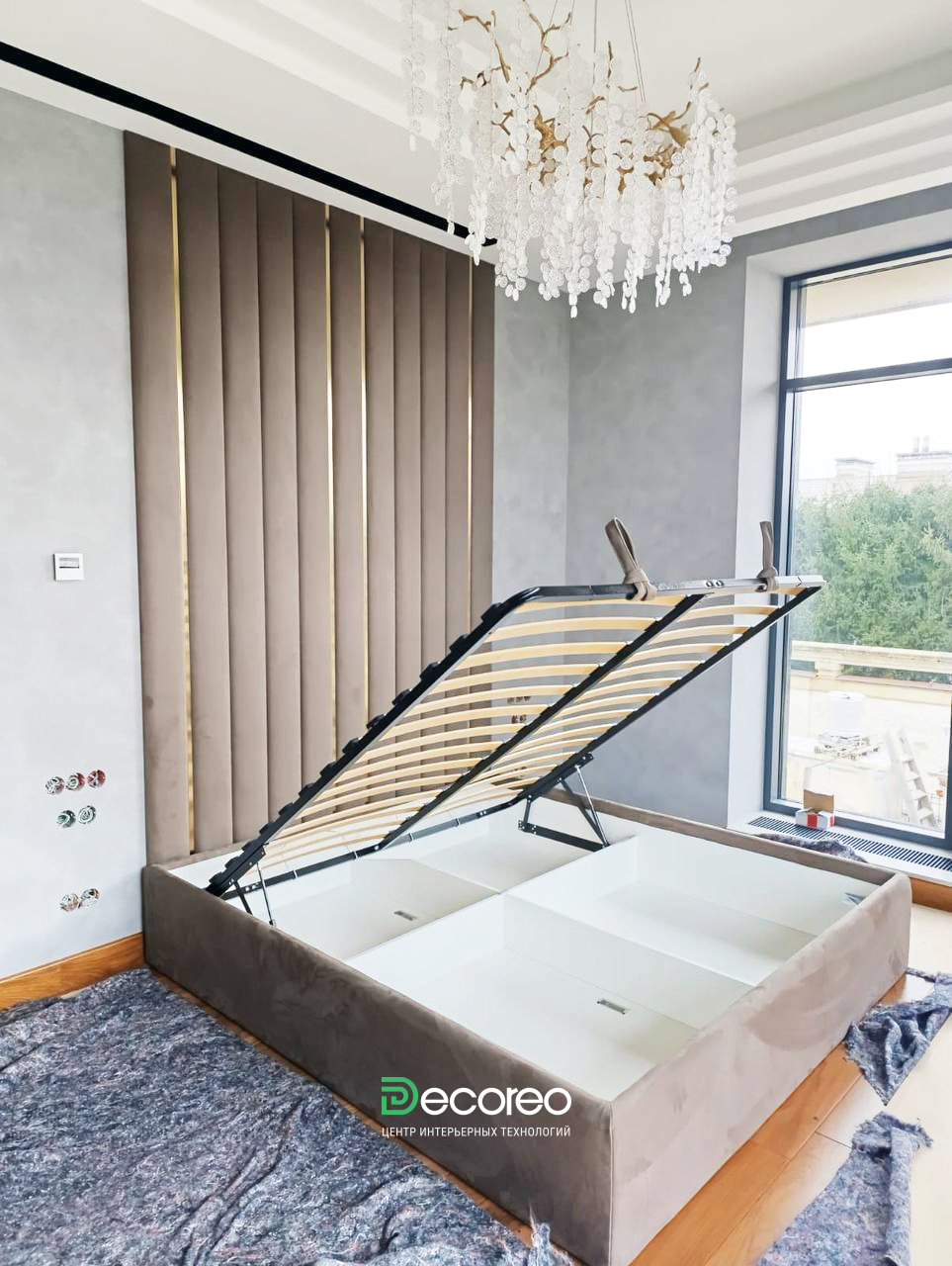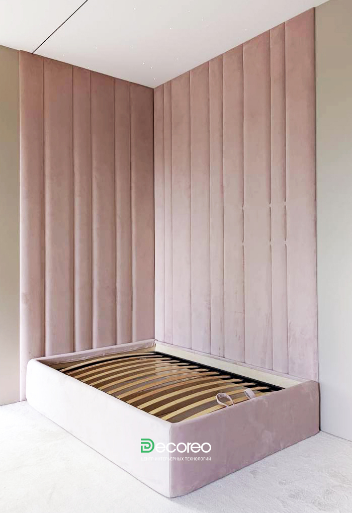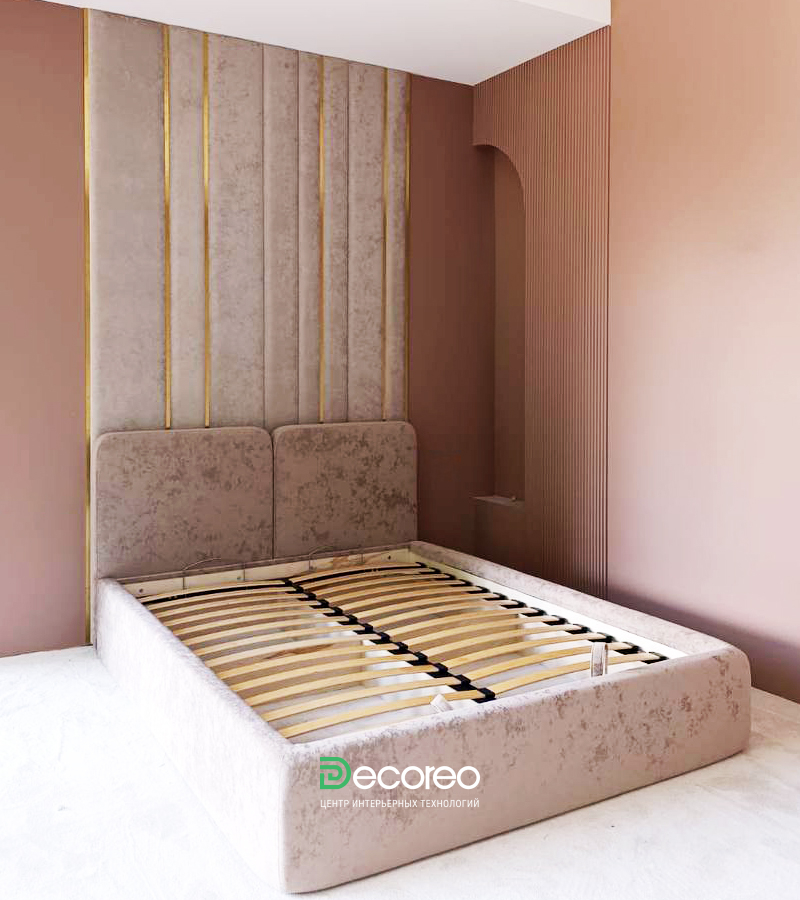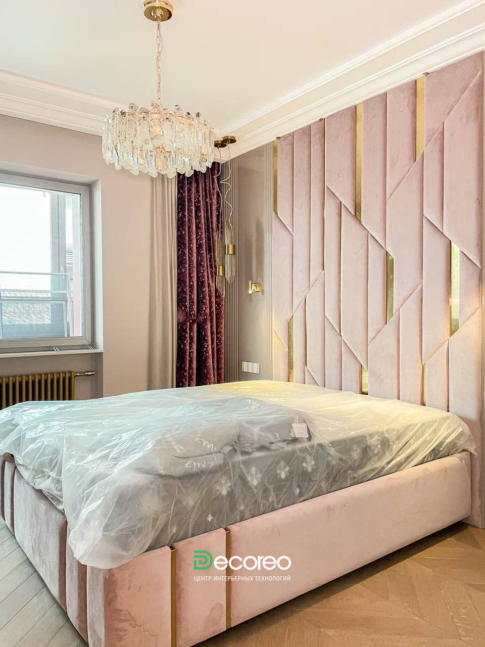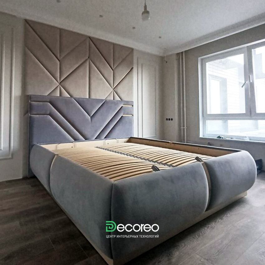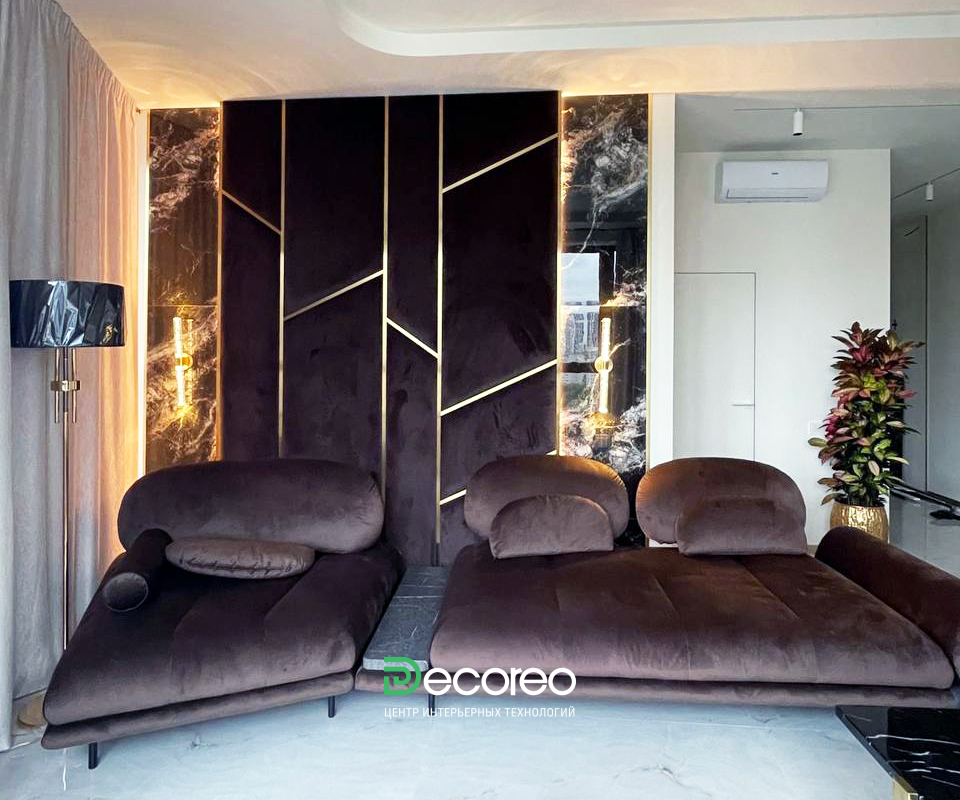 Мы создали современный интерьер, где каждая комната сочетается в одном стиле и цветовой гамме, используя ритмические элементы, такие как рейки у кроватей, в зоне телевизора, в шкафу и на тумбе. Стены декорированы различными материалами, такими как 3D-панели, мягкие панели и дерево, которые гармонично дополняют друг друга. Особый уют интерьеру придают мягкие кровати, выполненные по индивидуальному заказу.