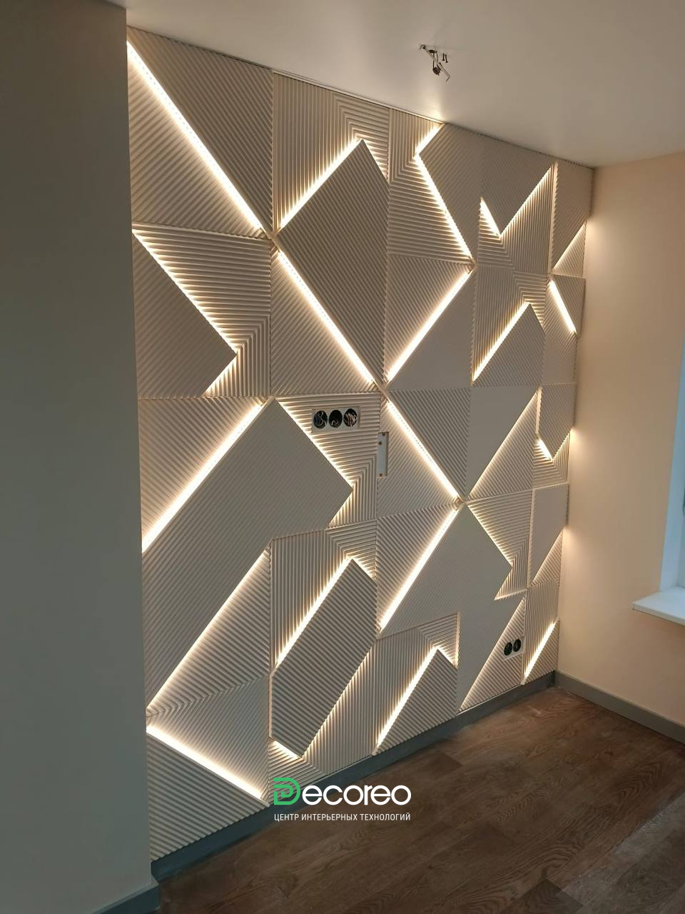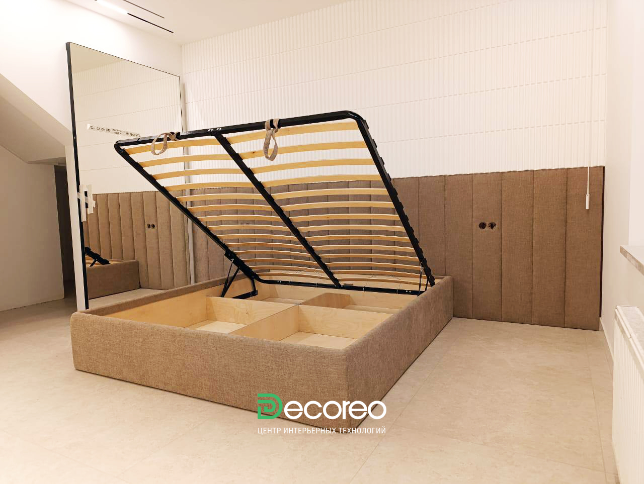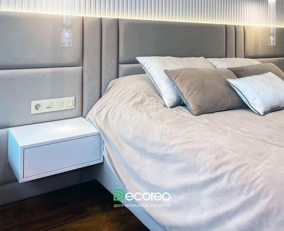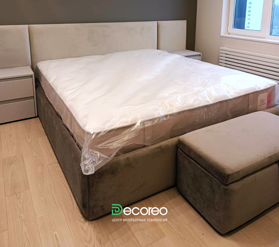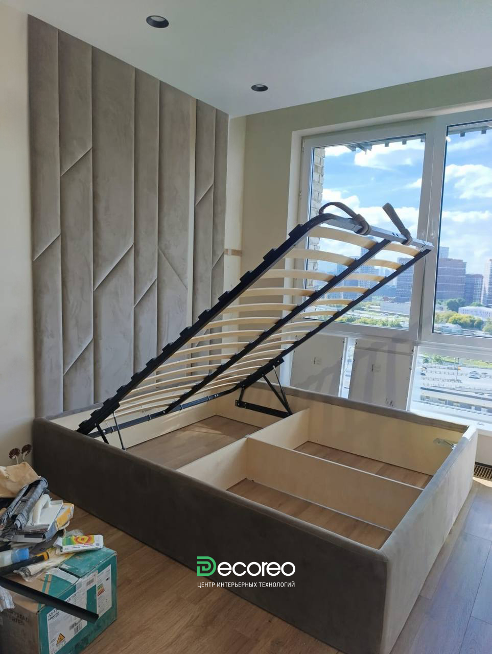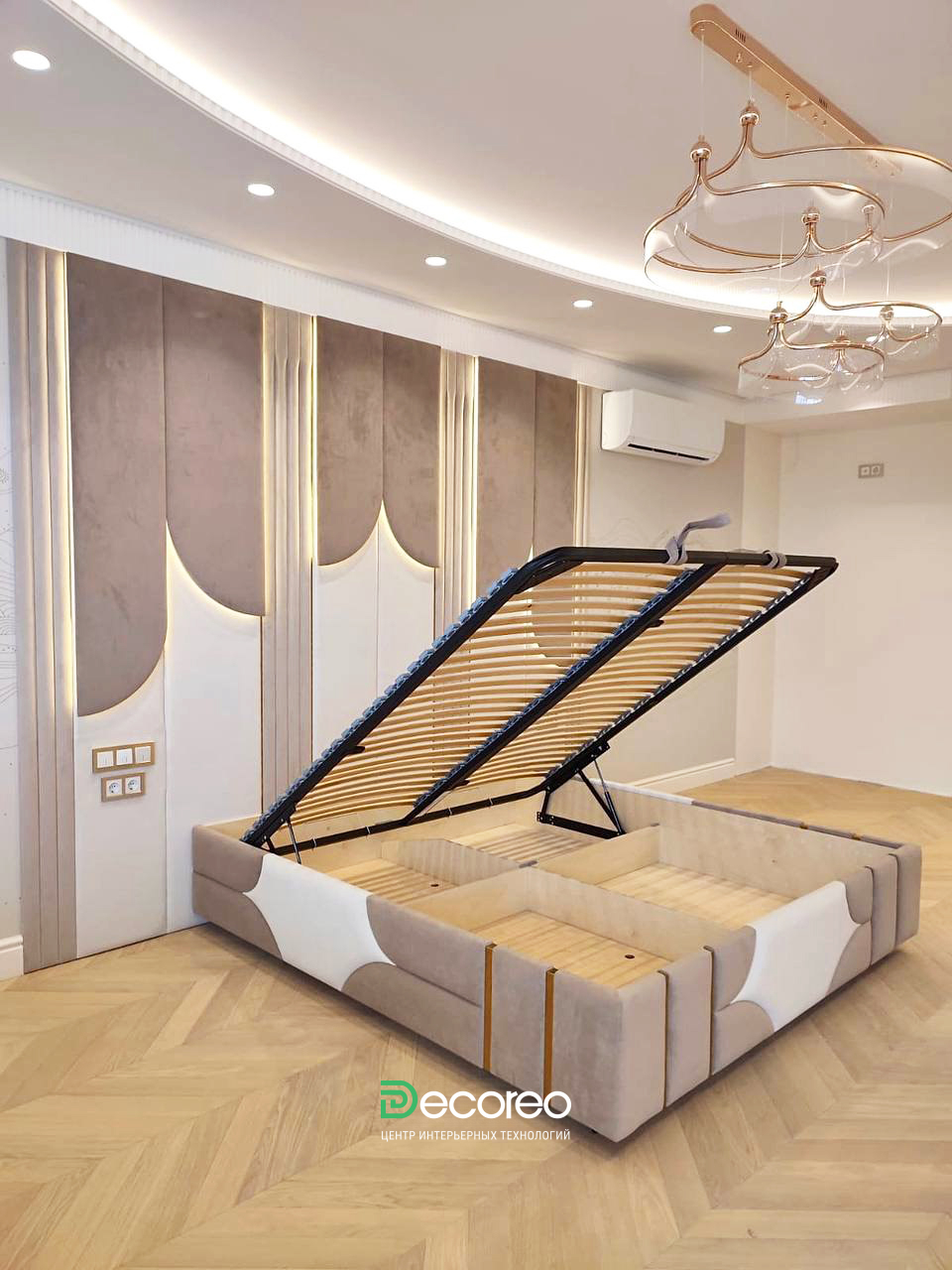 Мы создали современный интерьер, где каждая комната сочетается в одном стиле и цветовой гамме, используя ритмические элементы, такие как рейки у кроватей, в зоне телевизора, в шкафу и на тумбе. Стены декорированы различными материалами, такими как 3D-панели, мягкие панели и дерево, которые гармонично дополняют друг друга. Особый уют интерьеру придают мягкие кровати, выполненные по индивидуальному заказу.